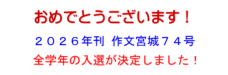 今年も宮城県内の小学生のみなさんから、たくさん作文を応募していただきました。ありがとうございます。 ただいま地区審査を終えた作品をもとに県審査を行っております。県審査入選の作品は「作文宮城」に掲載されます。 すばらしい作品ばかりで、審査員の先生方も入選作品の審査にとっても苦労しております。 県審査の結果は、2026年1月6日から入選が確定した学年から発表しております。